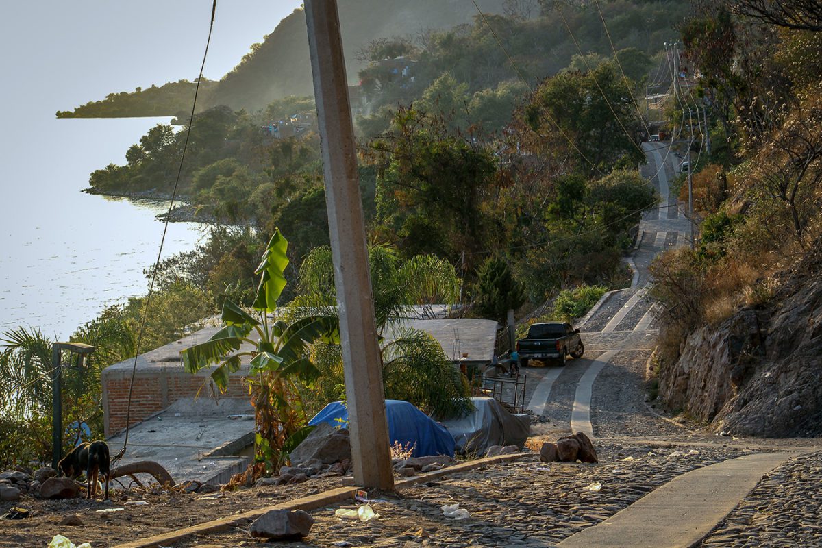Agua Caliente, una agencia de Poncitlán, es un pueblo de 950 habitantes, más de 500 de ellos son niños y niñas. Un kilómetro y medio de terracería lo conecta con el siguiente poblado llamado San Pedro Itzicán. Parece un chorizo, me dice mi guía, debido a que solo tiene una calle que alberga más de 150 casas construidas a unos metros del Lago de Chapala.