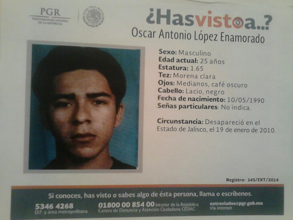 “La sorpresa me la llevé yo cuando después de insistir, mediante la abogada Rosario Pérez Ulloa, del área de Derechos Humanos de la Secretaría de Gobernación, mi ministerio público de Puerto Vallarta nos dijo que existía un cuerpo con semejanzas físicas a las de Óscar y que éste se había localizado e incinerado en 2013. Que a este cuerpo se le había encontrado un teléfono celular con un número perteneciente a Honduras. Esa información no la tuve hace dos años y eso me motivó a venir a la Fiscalía de Jalisco para exigirles me mostraran toda la información de ese cuerpo”.