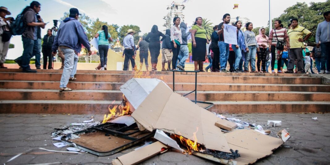 Ahora, en la cabecera del municipio de Temoac, fundado por el luchador social Vinh Flores, tío de Samir que enfrentó al gobierno de Díaz Ordaz y también fue asesinado, mujeres arrebatan las boletas de quienes están en la mesa y las lanzan donde los hombres ya prendieron fuego.