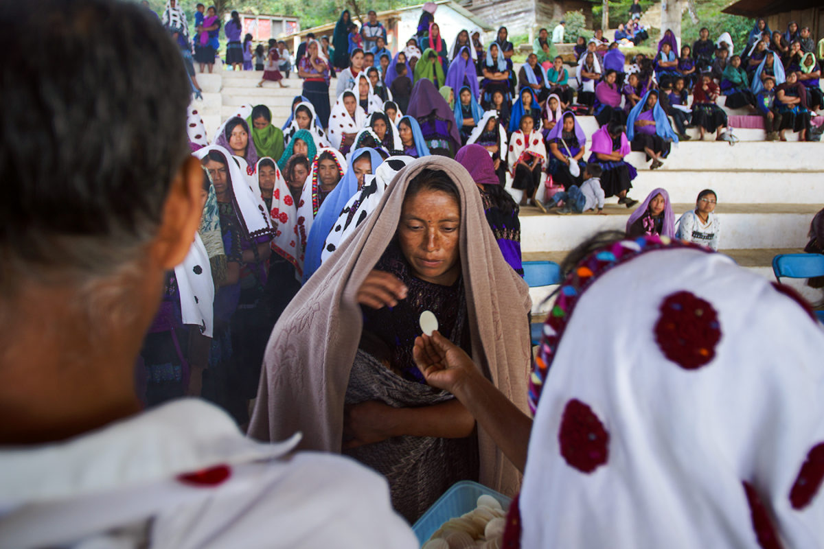 Sentados sobre unas escalinatas, muy cerca de donde se encuentran enterrados los 45 mártires de Acteal, Guadalupe Vázquez Luna me dice que no me deje engañar, que las mujeres desde su fe se pueden ver muy sumisas y muy humildes pero en el fondo son mujeres muy fuertes, trabajadoras, luchonas.
