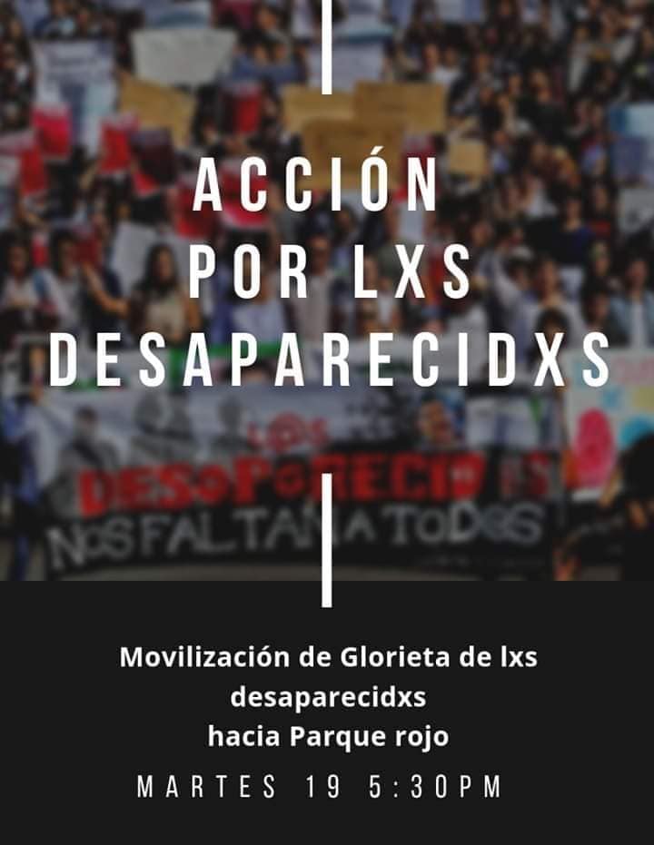 Por la tarde, la Asamblea Interuniversitaria que se creó tras las desaparición de los tres estudiantes del CAAV en 2018, también está convocando a una segunda acción de protesta y memoria que arrancará a las 17:30 horas de la Glorieta de las y los desaparecidos hacia el Parque Revolución (mejor conocido como parque rojo).