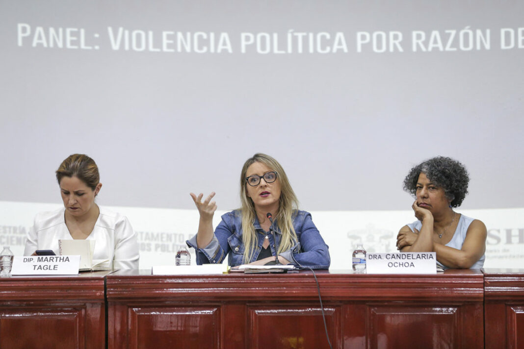 Realizan el panel: “Violencia política por razón de género ¿Mujeres en el espacio público?”, en el Centro Universitario de Ciencias Sociales y Humanidades Belenes (CUCSH), donde la politóloga Flavia Freidenberg, la diputada federal Martha Tagle, la magistrada Gabriela del Valle y la titular de la Comisión Nacional para Prevenir y Erradicar la Violencia Contra las Mujeres Candelaria Ochoa, coincidieron en que los obstáculos para las mujeres en la vida política son los propios partidos políticos, y señalaron la falta de legislar y juzgar con perspectiva de género, así como una justa paridad de género, y luchan desde sus trincheras para que se incluya la violencia política en la legislación.
