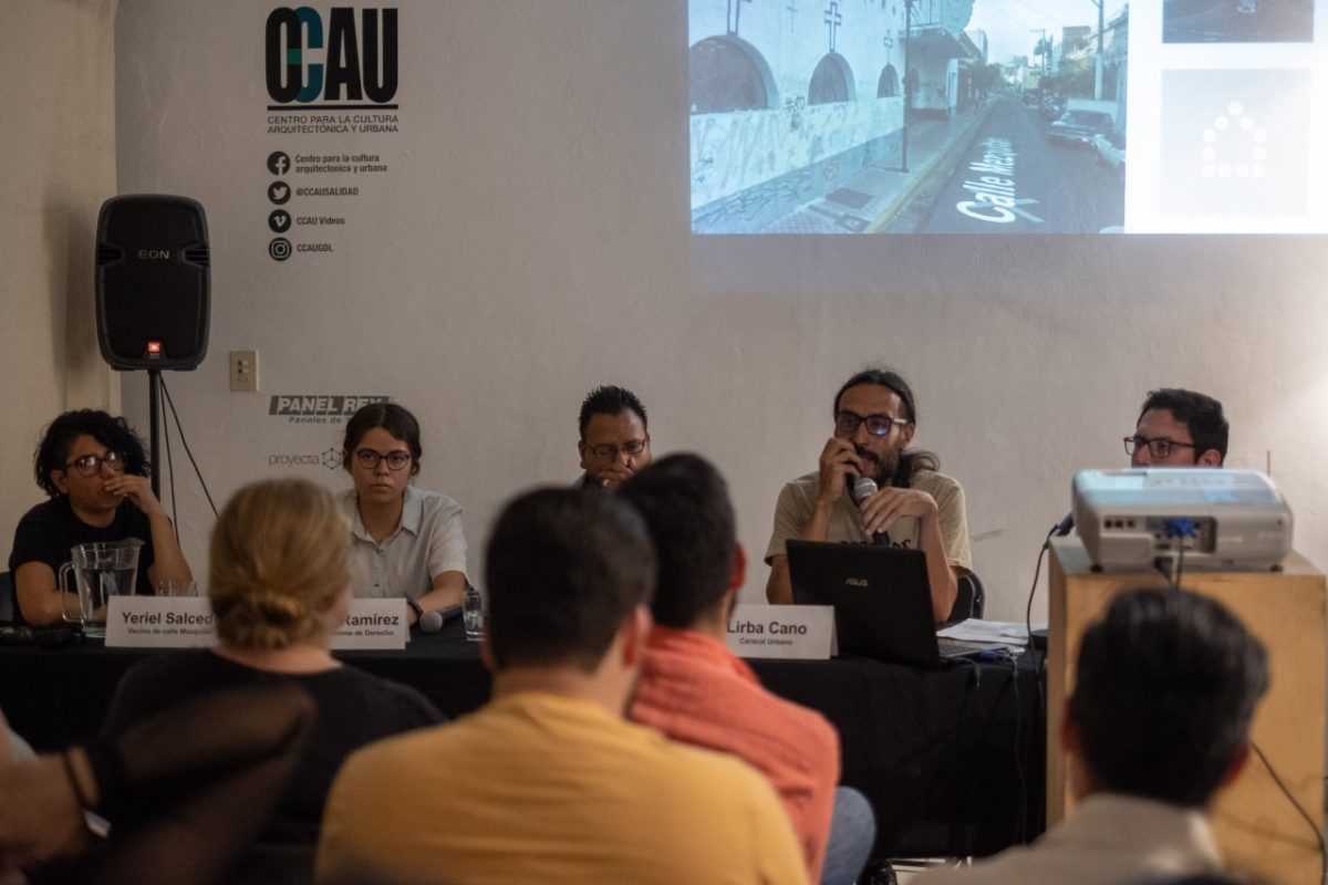 Lirba Cano (Caracol Urbano), Mónica Ramírez (Colectiva Autónoma de Derecho), Alejandro Barrón (Únete Huentitán), Yariel Salcedo (Vecino de la calle Mezquitán) y Christian Grimaldo (Caracol Urbano).