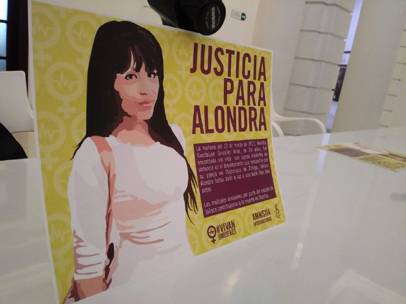 Alondra Guadalupe González Arias fue localizada sin vida en su departamento en el municipio de Tlajomulco de Zúñiga, el 10 de marzo de 2017, nueve días después de haber dado a luz a segundo hijo. Pese a que un mes antes había denunciado ante el Centro de Justicia para las Mujeres, la violencia que sufría en manos de su ex pareja, nunca fue activada la orden de protección que había solicitado.