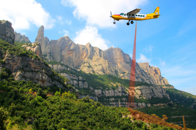 Simulación del vuelo con la tecnología LiDAR en un avión del Institut Cartogràfic i Geològic de Catalunya.