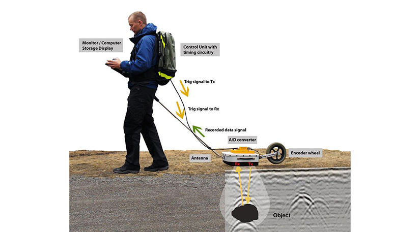 Esquema explicativo de cómo funciona un georadar (Fuente: GeoScience).