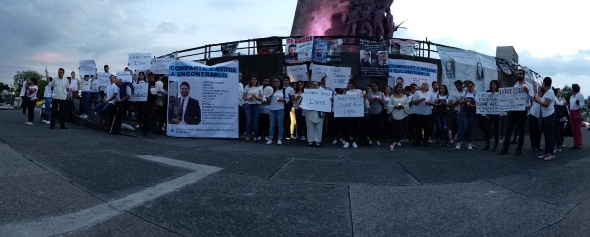 Con pancartas, consignas y veladoras familiares y amigos de Isaac se manifestaron pacíficamente alrededor de la Glorieta de las y los desaparecidos en la ciudad de Guadalajara, Jalisco, con el objetivo de hacerle saber a la sociedad y a las autoridades en el estado que no pararan hasta verlo de vuelta y con vida.