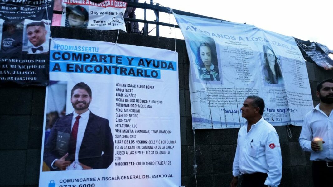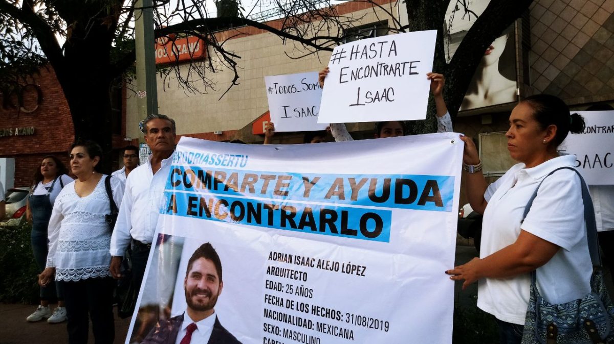 A doce días de la desaparición de Adrián Isaac Alejo López, arquitecto de 25 años de edad que fue visto por última vez en la central camionera del municipio de La Barca, Jalisco, el pasado 31 de agosto; familiares y amigos se reunieron este jueves en la Glorieta de las y los desaparecidos para colocar una lona con su rostro, nombre y datos que permitan a la sociedad ofrecer información sobre su paradero.
