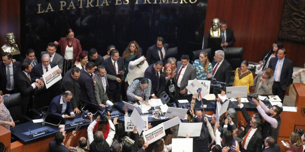 Finalmente, poco después de las nueve de la noche, Piedra Ibarra tomó protesta en medio de gritos y jaloneos entre senadores de Morena y del PAN, que continuaron con las pancartas y gritos que acusaban un presunto fraude en la elección.