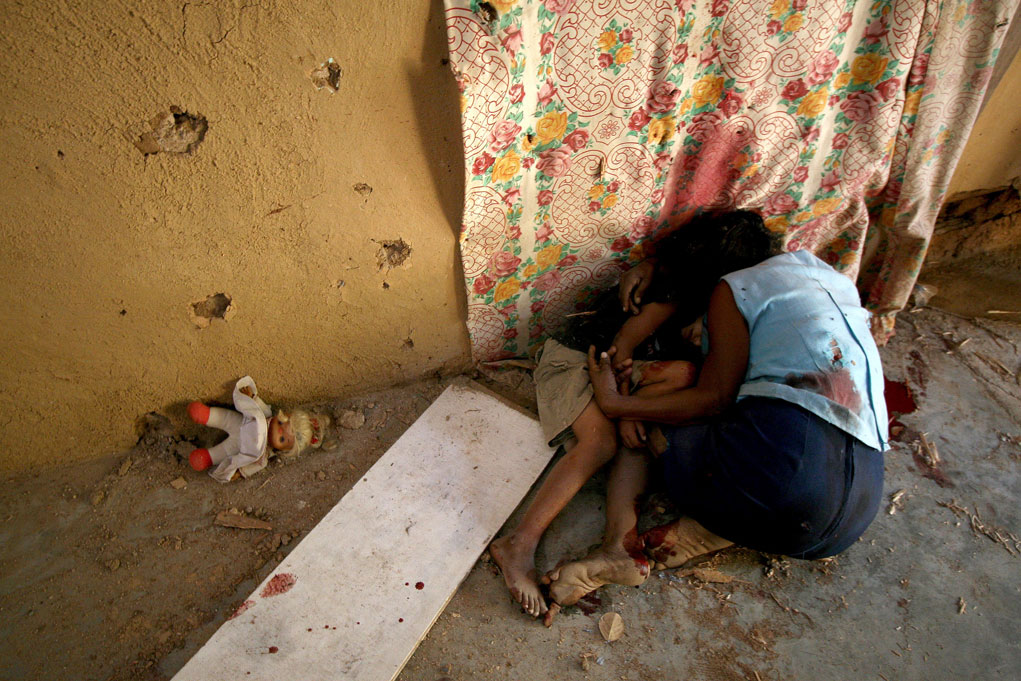 El abrazo de una madre a su hijo debiera ser siempre un gesto conmovedor, pero la realidad muchas veces nos ofrece retratos que desafían nuestros actos y pensamientos. Así pasa con las fotografías de Pedro Pardo, así sucede con la anterior imagen que trastoca nuestros sentidos y nos muestra una escena en la que, pese a la muerte, la vida se sujeta y sostiene a través de un abrazo.