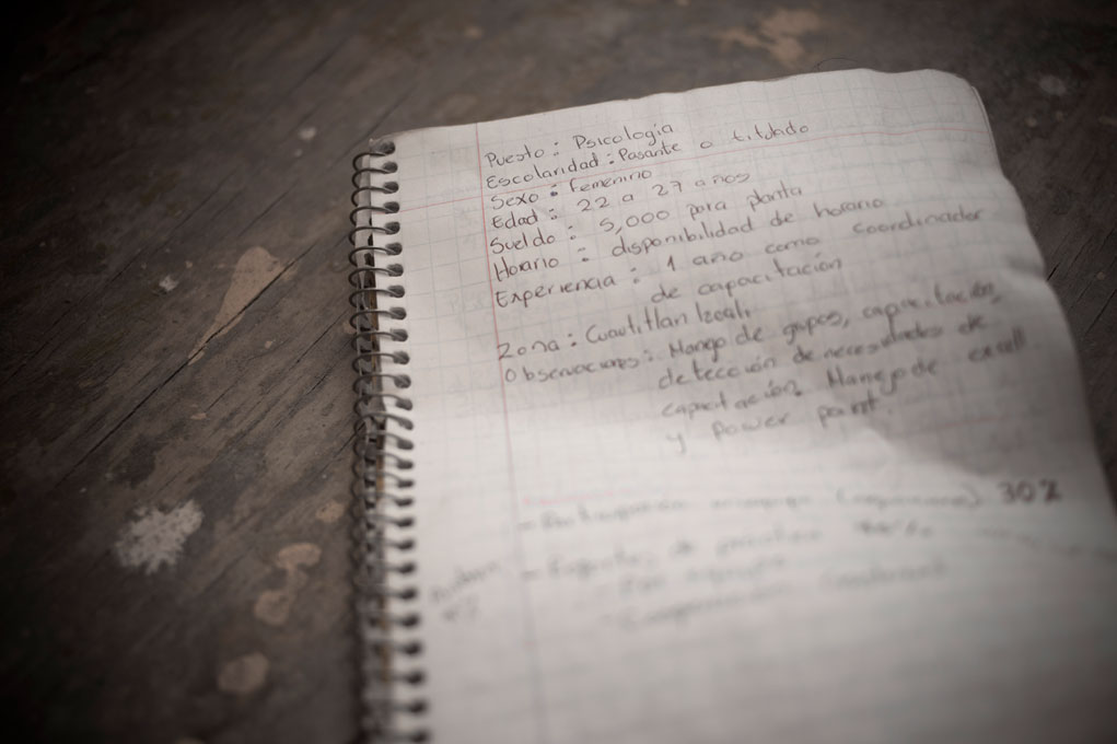 “Todo mundo estaba encima de Javier Sicilia y yo decía no manches… hay decenas de víctimas y todos estamos sobre él. Ahí supe que nos estábamos equivocando de mensaje y de receptor, pues bastaba alzar las cámaras para que la gente se juntara con tal de que saliera la foto de su familiar desaparecido. En ese momento y durante el mitin que se estaba haciendo en Morelia pasé por un puesto de revistas y vi las postales, compré una y en mi afán de que las víctimas no fueran cifras, le pedí a una chica que me pusiera el nombre de su desaparecido y me contara en la postal lo que había pasado; además, les pedí que ahí escribieron algo que nunca le había dicho, pero que les gustaría decirle. Lo que la chica escribió jamás se me olvidara porque su familiar era una periodista desaparecida… ahí fue cuando las postales se volvieran el eje de mi trabajo fotográfico en ese momento. Hacer este proyecto, incluso, se volvió algo terapéutico para mí y las familias”.