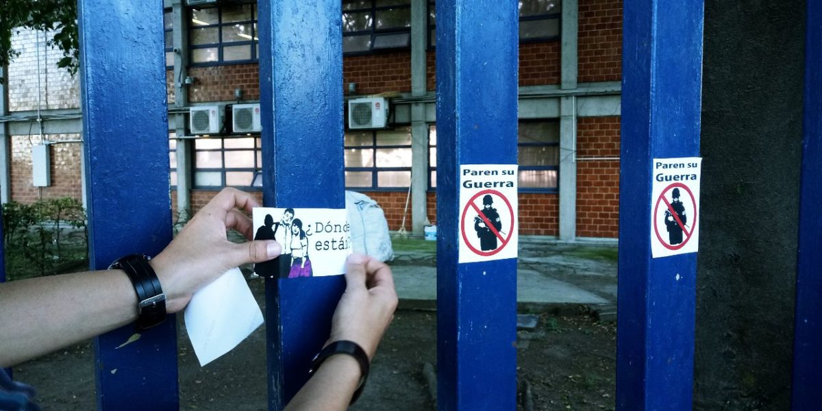 Un ejercicio que llevó a integrantes de colectivos de víctimas, organizaciones de la sociedad civil y académicos a salir a la calle para apropiarse de ella, a través de la pega de calcomanías con mensajes que denuncian el contexto de desaparición de personas en el estado y la demanda común de alto a la violencia.