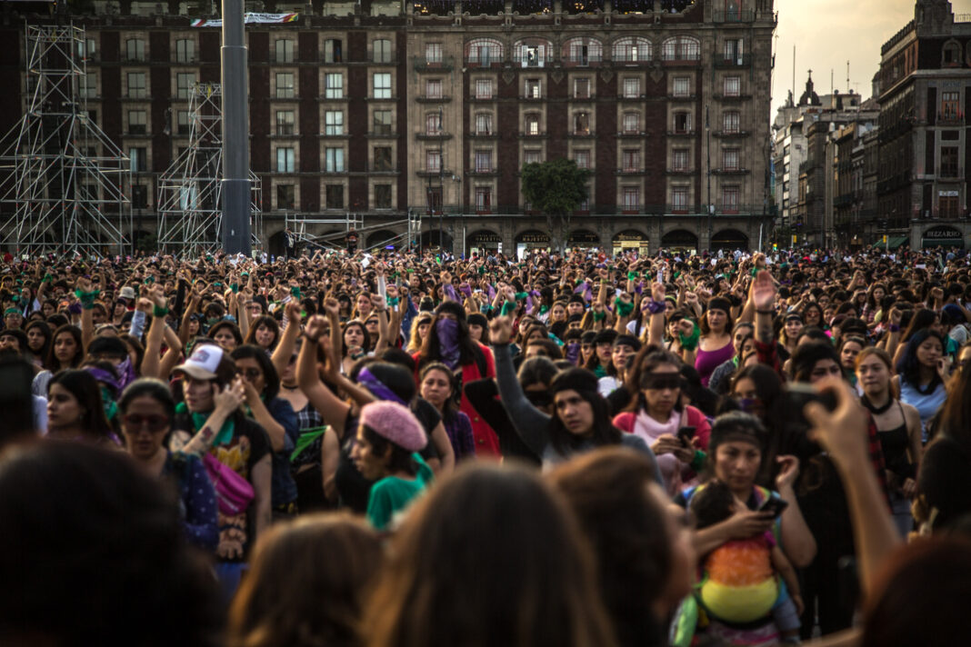 En punto de las cinco de la tarde, miles de mujeres comenzaron a reunirse en la plancha del Zócalo de la Ciudad de México donde colectivas se sumaron a la convocatoria nacional e internacional para replicar el performance “Un violador en tu camino”, que inició en Chile el pasado 25 de noviembre.