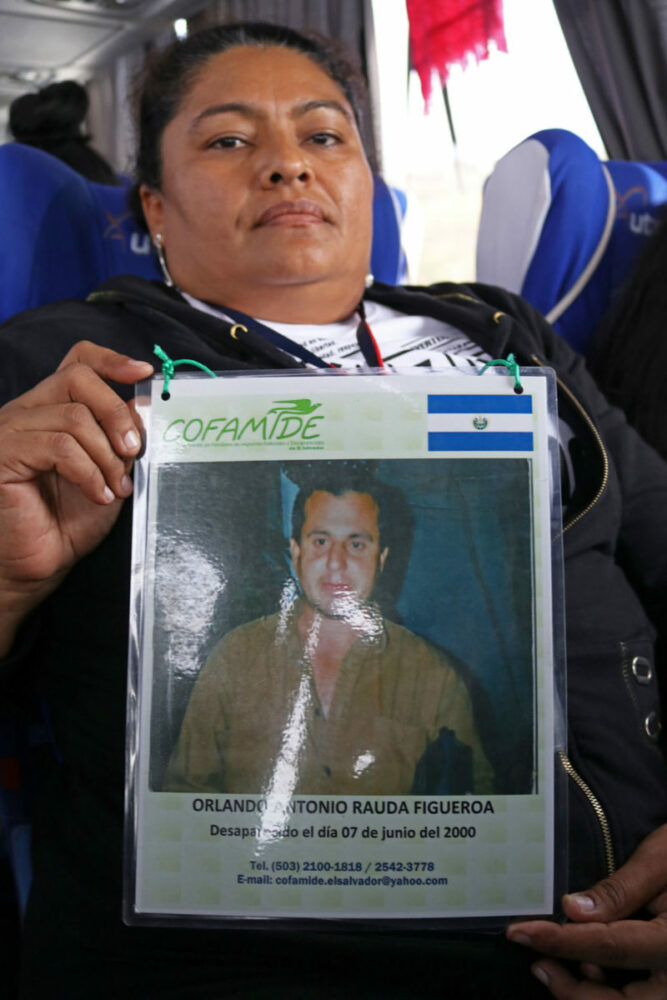 En esta ocasión portaba la ficha de búsqueda de Orlando Antonio Rauda Figueroa, desaparecido desde el 7 de junio de 2000.