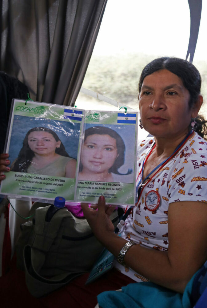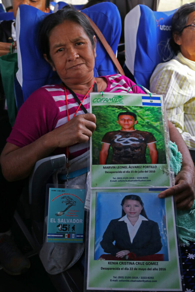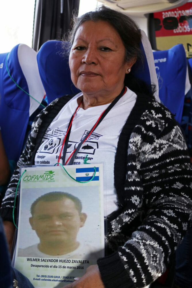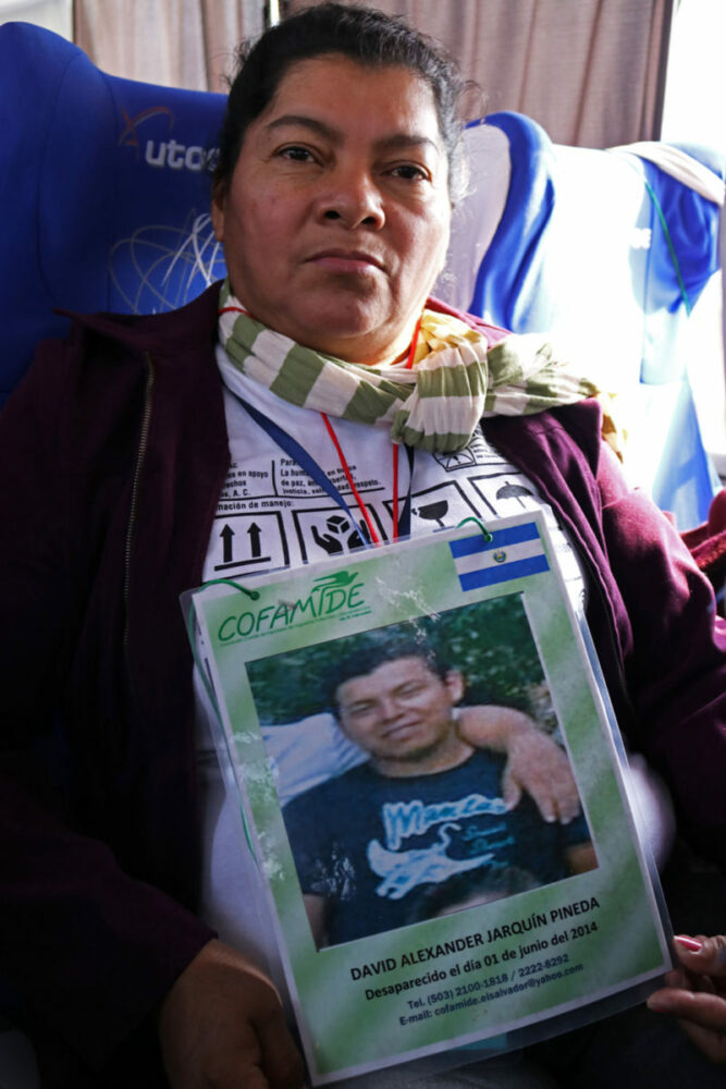 Sentada en uno de los asientos del camión en el que viaja desde hace casi diez días, nos pregunta con curiosidad si la foto que le tomaremos sólo será de la ficha de búsqueda de su hijo, pues a ella le gustaría que, además, ésta imagen estuviera acompañada de su rostro. Y es que, le preocupa que su muchacho, ya no pueda reconocerse así mismo o a ella, luego de 10 años de su partida de El Salvador.