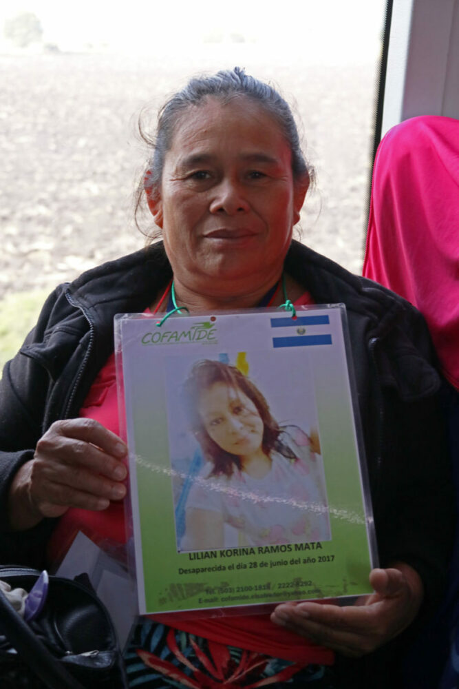 Colgada a su cuello, también lleva la foto de Kenia Cristina Cruz Gómez, una joven de su país que también viene buscando porque sus padres no tuvieron la oportunidad de acompañar esta vez a la Caravana. Amorosa posa para la cámara y sostiene con sus dos manos las imágenes de Marvin, su hijo, y de Kenia, su no hija de sangre pero que también busca.