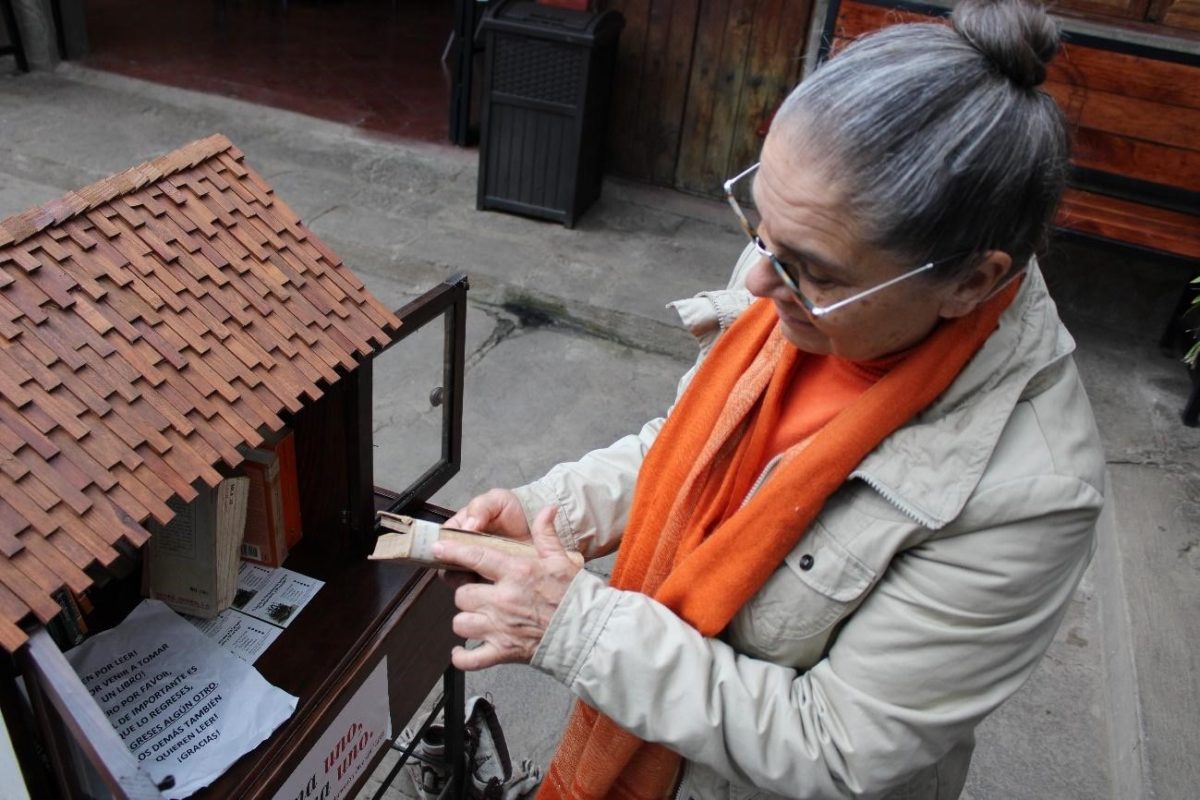 Por si los talleres fueran poco, la maestra Pepis ha colocado mini bibliotecas ambulantes, tres casitas que albergan alrededor de 20-25 libros cada una en con un letrero que dice: “Toma uno, regresa uno”, esto con la finalidad de crear conciencia en las personas adultas del municipio.
