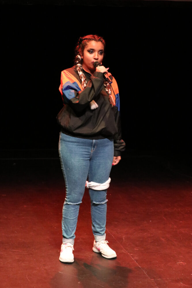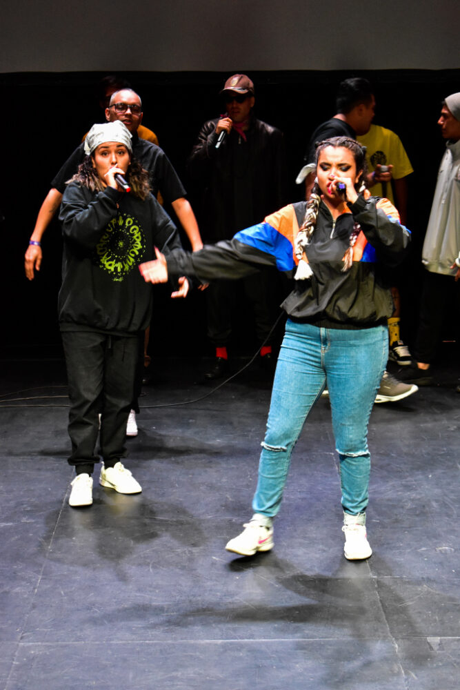 “Mujeres raperas hay, y hay un montón, pero ahorita en la actualidad están saliendo puños”, comenta Elha de Fato, rapera tapatía, antes de su presentación en el Conjunto Santander de Artes Escénicas, donde ella y Nathy fueron las únicas mujeres que participaron.