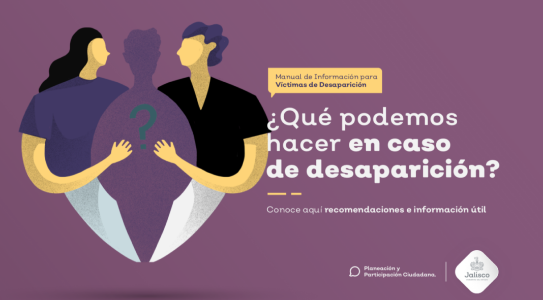El Manual de Información para Víctimas de Desaparición puede consultarse en: https://sisovid.jalisco.gob.mx/resources/041019_JAL_PARTICIPACION_CIUDADA.pdf?fbclid=IwAR2t9jfXhTYcG0AbNRX7yvnx6NHav945KMOpdurzjcj-IWvLRegFyEmPgF0
