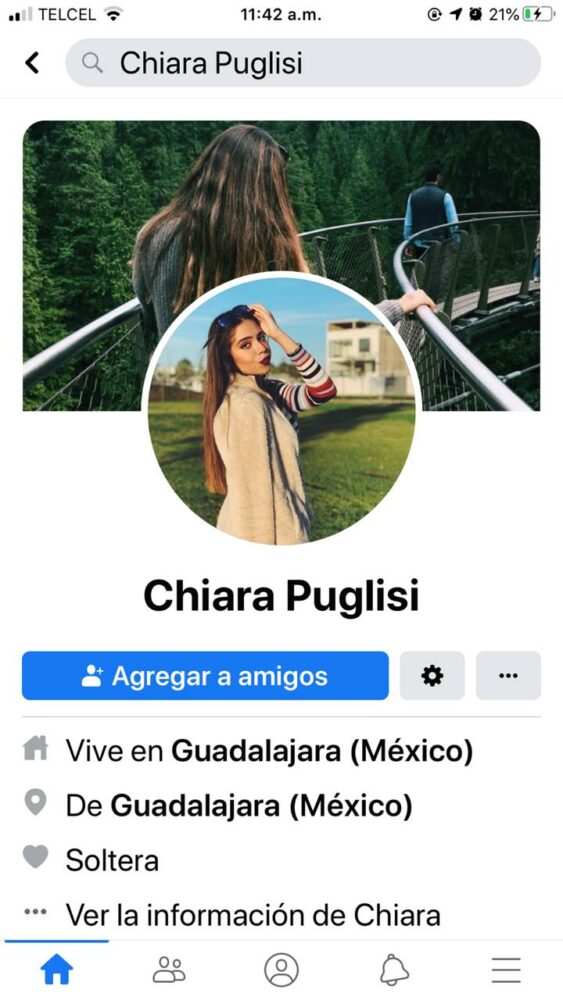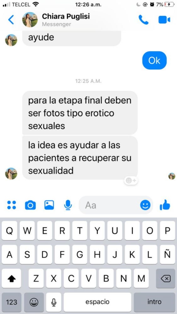 “Mándale solicitud, ella te explica todo” le dijo, acto seguido su familiar le hizo llegar el enlace al perfil de Chiara Puglisi, la supuesta doctora que también contactó a Cecy. América accede, la agrega y comienza la labor de los dos hackers para terminar de engancharla. Incluso, explica, le enviaron imágenes “gancho” de otra mujer joven (a la cual no reconoce) para ejemplificar cómo es que querían las fotografías.