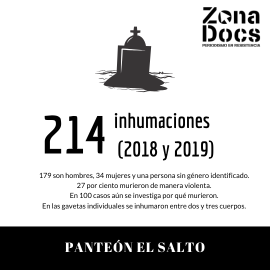 En este año, la Comisión de Inhumación (creada en septiembre de 2018) ha revisado 222 expedientes que están a la espera de conseguir un espacio en algún panteón para ser inhumados. Su destino final podría ser el Panteón Municipal No. 3 de El Salto, lugar donde ya se han inhumado 214 personas fallecidas no identificadas, la mayoría de ellas fueron las que sin control y en condiciones poco favorables para su identificación fueron hacinadas en los llamados “contenedores de la muerte”.
