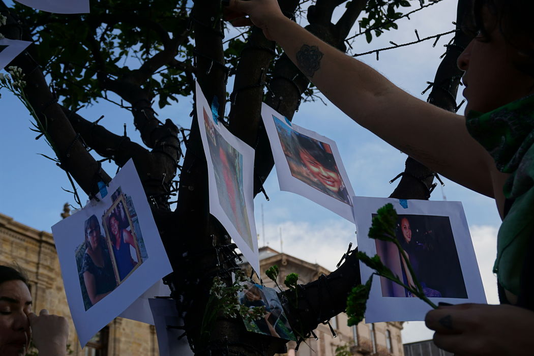 Las actividades que se llevaron a cabo en el jardín principal de la explanada frente a Palacio de Gobierno, arrancaron con el “Tendedero de las emociones”, nombre con el que decidieron nombrar el acto de denuncia pública. Ahí, mujeres adultas, jóvenes y niñas colocaron en hilos color negro, mensajes sobre las situaciones que el contexto de violencia machista ha generado en sus propias vidas y entornos, también, exhibieron los nombres y fotografías de quienes han sido sus victimarios y en un espacio especial destinado, expusieron los rostros de las víctimas.