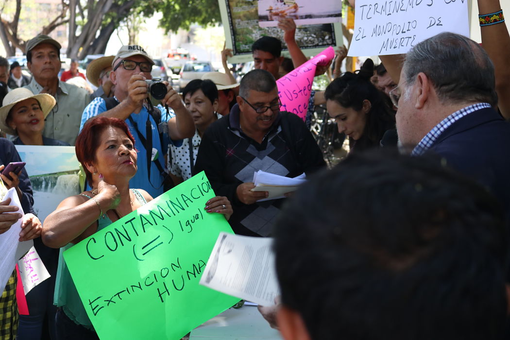 “No hay medicamento. No hay vacuna. No hay absolutamente nada”, increpó una habitante de Juanacatlán al Secretario de Salud de Jalisco, Fernando Petersen, quien después de escuchas las consignas: “Que baje el secretario a escuchar al pueblo”, hasta que finalmente éste se vio obligado a bajar de su oficina para escuchar y dialogar con los pobladores afectados por la contaminación del Río Santiago.