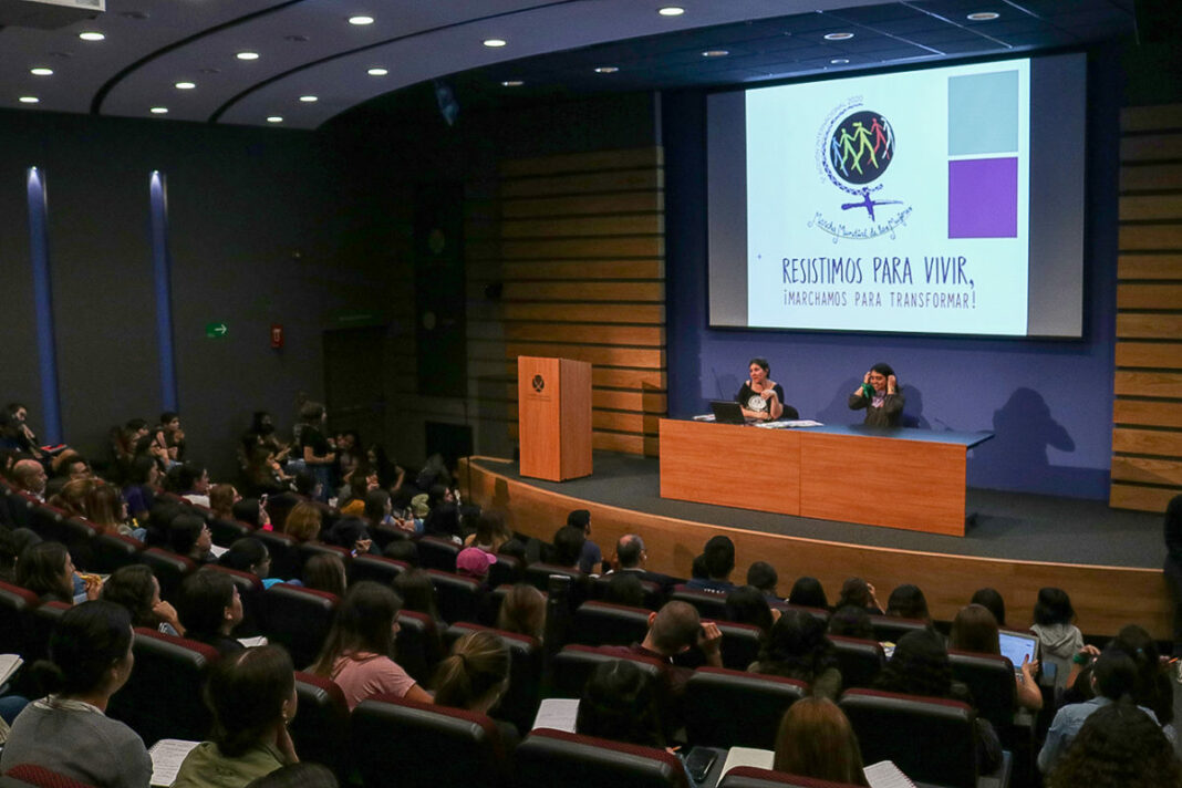 Carmen Díaz, doctora en Ciencias Sociales con especialidad en Antropología Social (CIESAS Occidente) e investigadora de la Marcha Mundial desde hace más de una década, explicó que, como cada 5 años, este 2020 se llevará a cabo una acción internacional con el lema: “Resistimos para vivir, marchamos para transformar”: