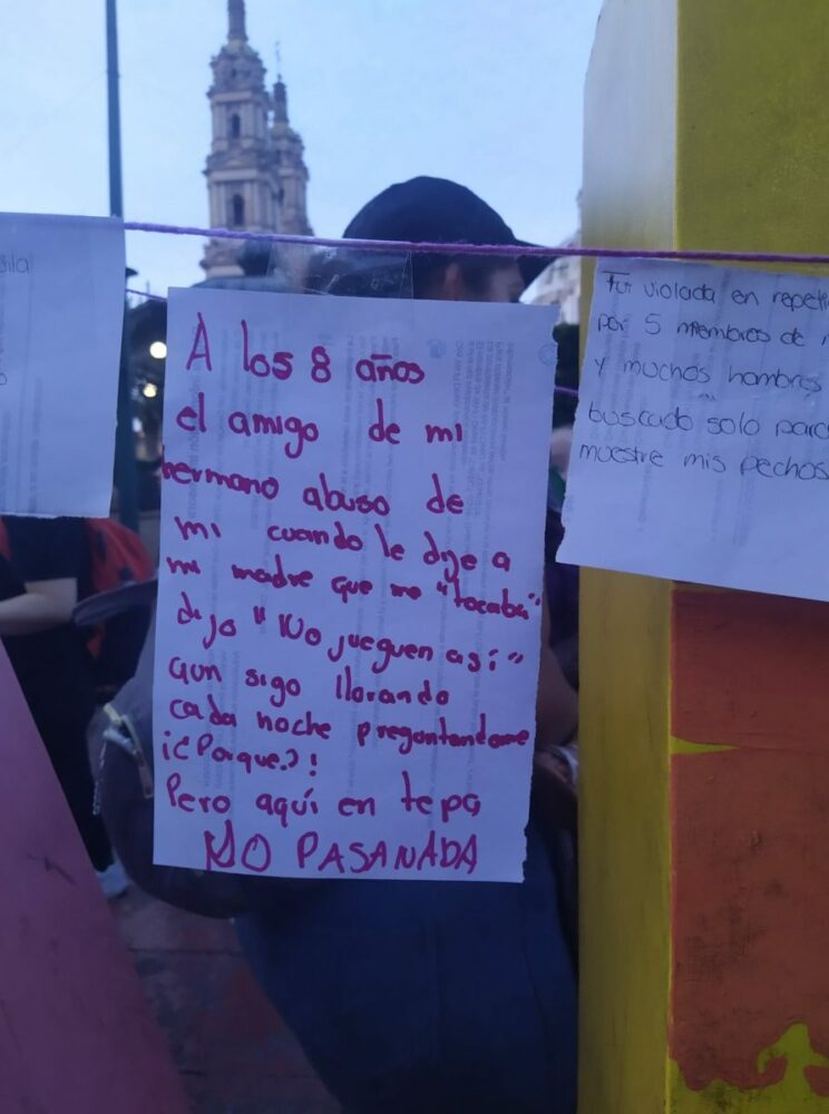 Y aunque el clima nos favoreció, algunas miradas y comentarios no lo hicieron. Pero igual no nos importó, porque sabíamos que por más que nos identificaran como la hija, sobrina o la prima de alguien con apellido tal o cual, ninguno de nuestros jueces ahí presentes saldría a pedir justicia en nuestro nombre anclándose en la importancia del apellido; pero cuando llegamos a la plaza donde está el Kiosco nosotras les mostramos a ellos que sí seríamos capaces de reclamar justica por sus hermanas, tías, madres, primas o amigas sin importar el “linaje” del que viniesen. Y justo eso fue lo que tal vez aplaudieron otros y otras ahí, que veían lo que ocurría también de lejos pero con una nieve de Yogurt a un lado.
