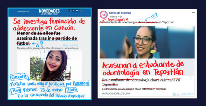 Al momento de que los asistente pudieron ver la corrección que hace esta página feminista, identificaron que ninguno usó palabras como: víctima o feminicidio, pero sí algunas otras expresiones que colocaron el acento en la responsabilidad que tuvieron las mujeres en los hechos que les arrebataron la vida.