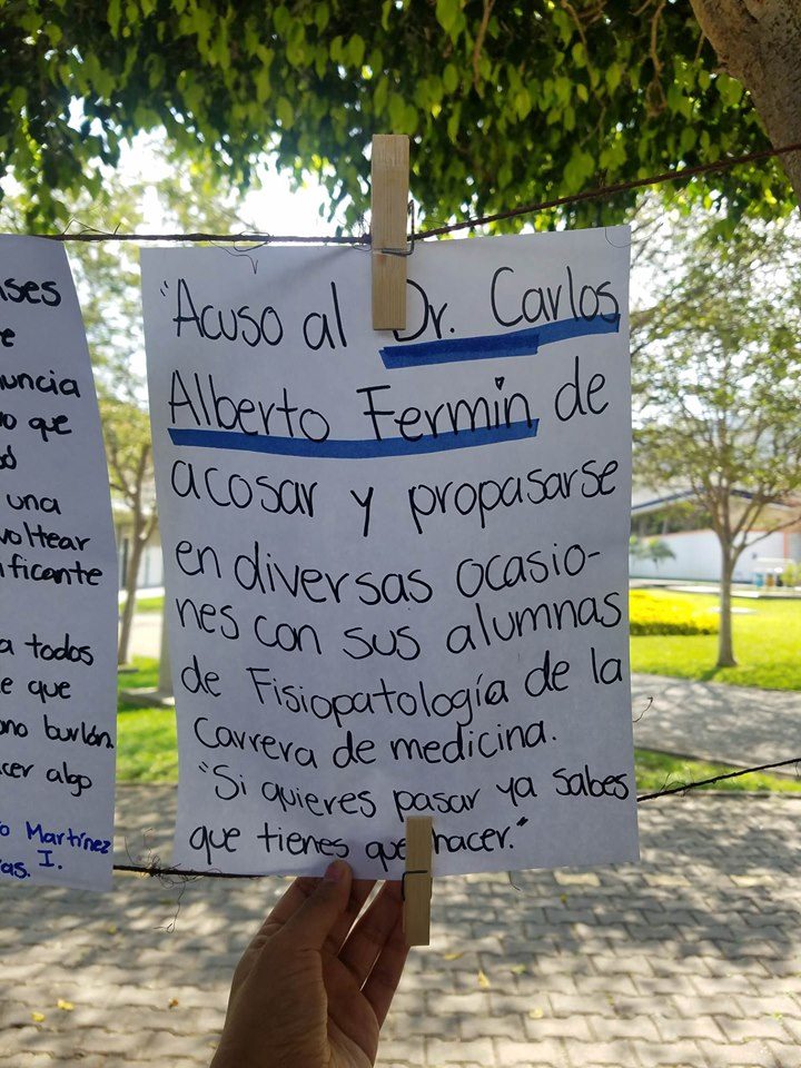 En CuSur, el tendedero se colocó después de la manifestación del 8 de marzo y gracias a éste, se expuso al profesor que concentra el mayor número de denuncias por hostigamiento dentro del plantel; tras evidenciarlo, las estudiantes lograron sacarle de su propio salón de clases al mostrarle cada una.