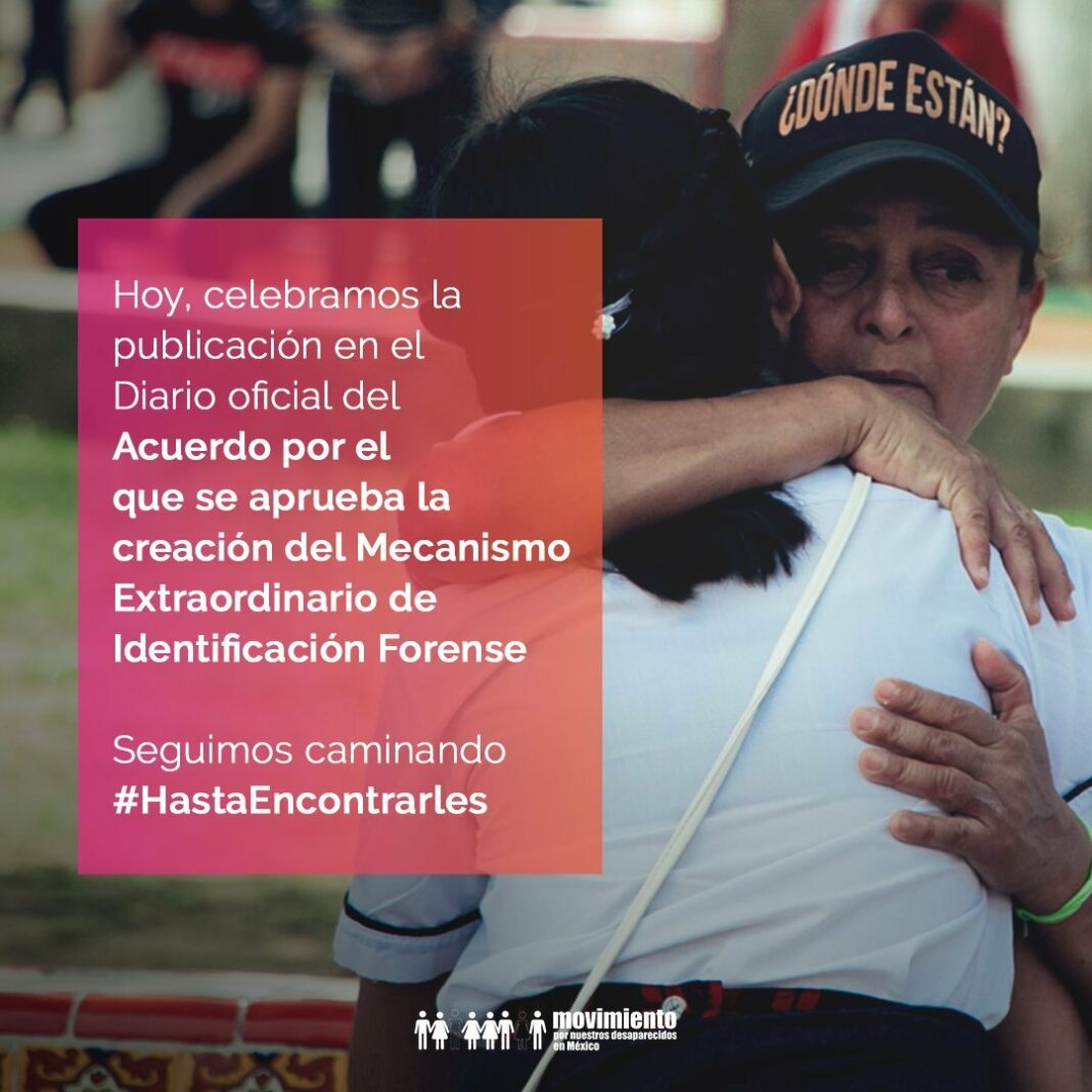 A 10 meses de la propuesta que el Movimiento por Nuestros Desaparecidos en México (MovNDmx) realizó al Estado Mexicano sobre la creación de un Mecanismo Extraordinario de Identificación Forense, este jueves 19 de marzo, el Gobierno Federal a través del Diario Oficial de la Federación, publicó el acuerdo por el que se crea esta unidad estratégica que permitirá llevar a cabo peritajes independientes sobre los cuerpos o restos óseos de personas que aún no han sido identificadas en las morgues y servicios forenses del país.
