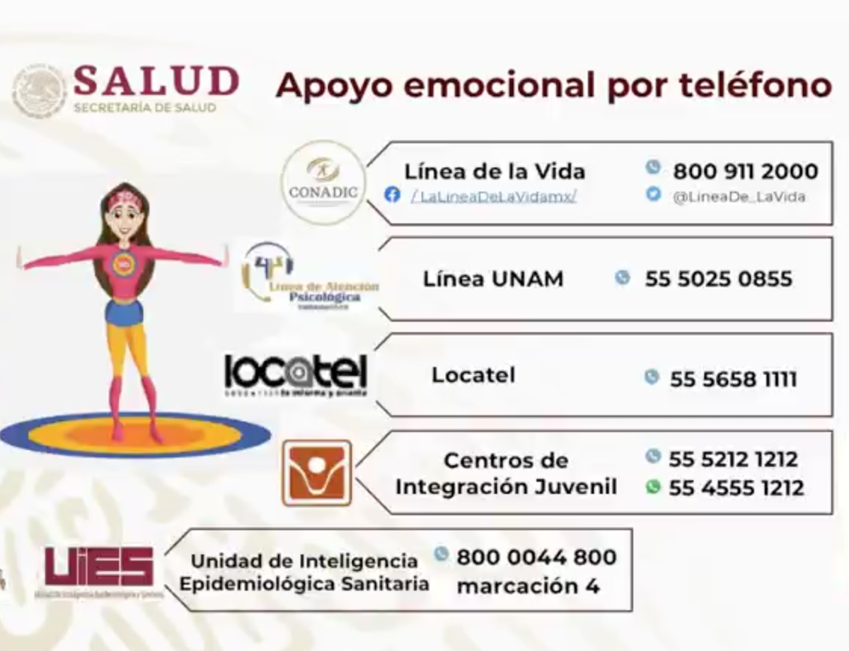 Aquí todos las líneas de atención en caso de que requerir para nosotros mismos o para algún familiar ayuda psicológica, psiquiátrica o en materia de adicciones.
