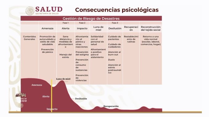 Esta atención prioritaria, explicó, ya se hace a través de brigadas de especialistas en salud mental que están dando acompañamiento virtual o telefónico a todo aquel que lo requiera o solicite. Dichas brigadas de atención a la salud mental tienen como base la “Gestión de Riesgos de Desastres” que consta de las siguientes fases y premisas: