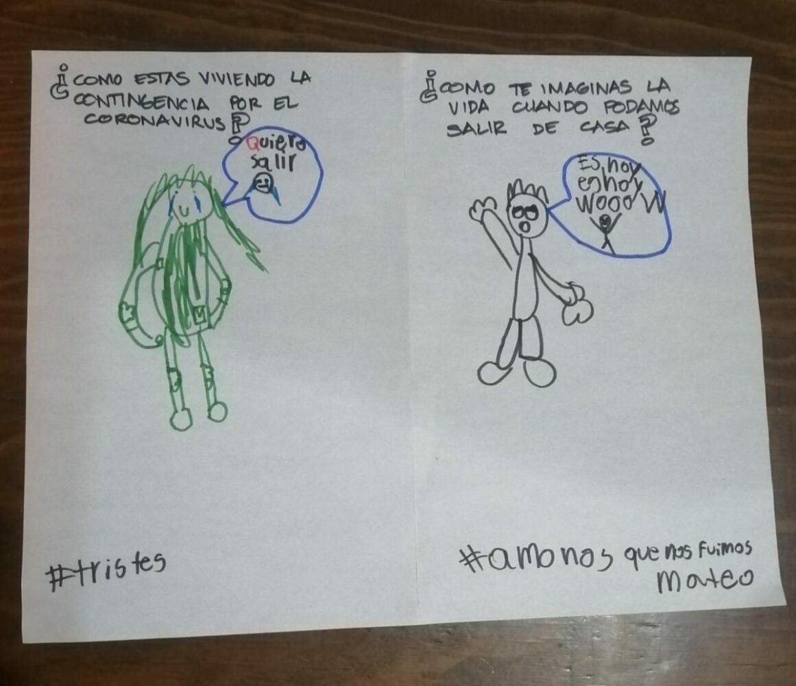 Estas son algunas de las historias y dibujos que, en el marco del “Día de las niñas y los niños”, jóvenes reporteras y reporteros han hecho llegar a ZonaDocs para celebrar su día y poner de manifiesto sus sentires. Sus creaciones son prueba de cómo han enfrentado la contingencia, qué ha significado para ellos y ellas permanecer en la espera de por fin salir a la calle y de cómo imaginan su mundo cuando acabe la pandemia.