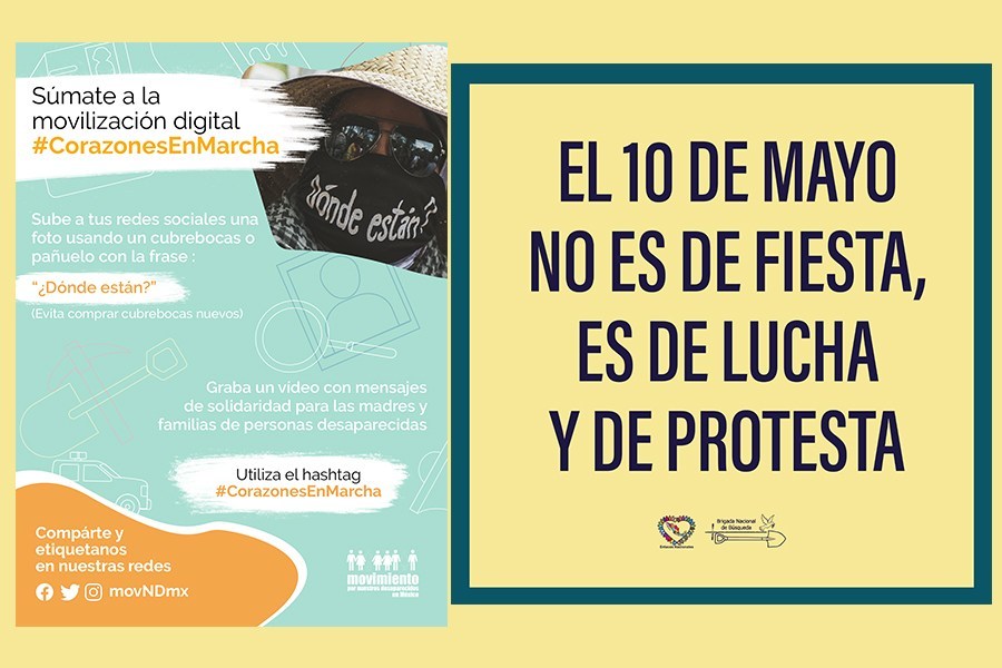 Además, han pedido que la noche del 10 de mayo se enciendan veladoras, se les tome fotografía o video y se compartan con la cuenta de Facebook Brigada Nacional de Búsqueda con los hashtag #MadresEnBúsqueda, #HastaEncontrarles y #CorazonesEnMarcha.