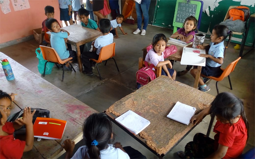 Ella iba cada domingo a Nueva Esperanza. Se queda en esta región selvática toda la semana para poder impartir diario sus clases a 33 niñas y niños tseltales. Con la pandemia tuvo que quedarse en casa a cuidar de su familia y sus hijos. La comunidad tiene luz, aunque no tiene agua potable.