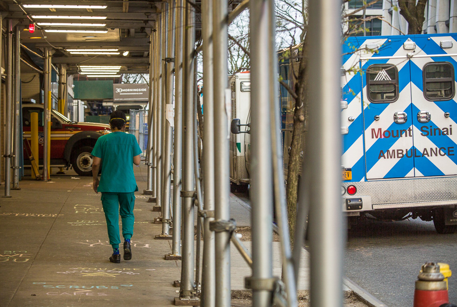 Los servicios médicos en Nueva York están a su máxima capacidad, todos los hospitales están abocados casi en su totalidad a la atención de pacientes con covid-19 y las necesidades de equipos de protección personal han superado lo imaginable. Para finales de la segunda semana de abril el gobernador del estado se muestra positivo frente a la situación y asegura que «lo peor ha pasado», pero que es necesario no confiarse para que no haya una segunda ola de contagios masivos.