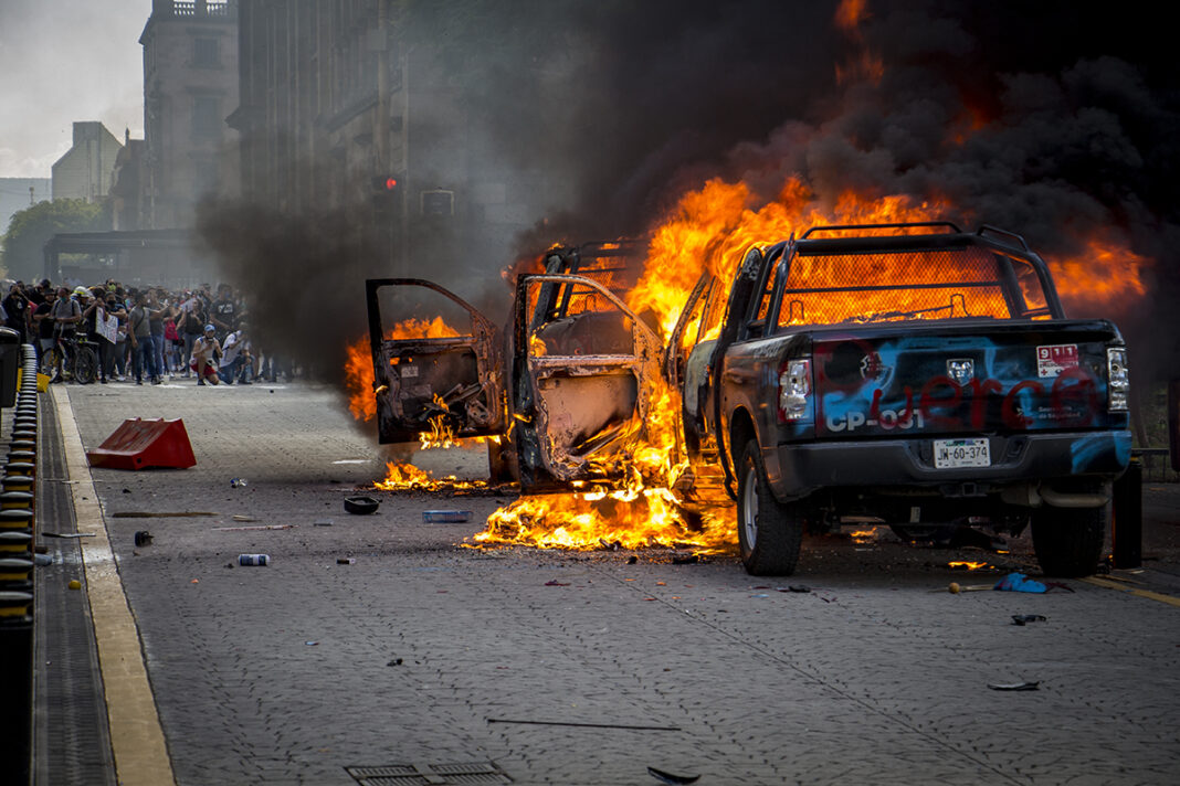 La protesta terminó con el despliegue de un helicóptero, patrullas y la Guardia Nacional.