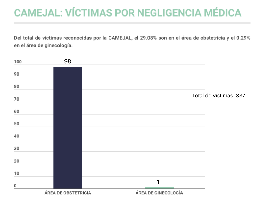 En esta investigación se encontró que las mujeres se ubican entre el sector más vulnerable, pues es el área de obstetricia y ginecobstetricia donde existe el mayor número de negligencias médicas derivadas en muerte, con 98 quejas. La Secretaría de Salud reconoce “que existen casos de violencia obstétrica que ocurren en las instituciones de salud públicas y privadas del país”; sin embargo, no se han creado mecanismos que impidan que ésta siga presentándose.