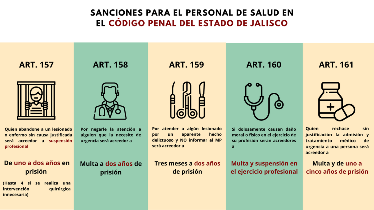 En Jalisco, por ejemplo, en los últimos 10 años se han presentado 1,110 denuncias en la Fiscalía General del Estado de Jalisco; sin embargo, de éstas sólo se han girado 18 órdenes de aprehensión y únicamente se han dictado dos sentencias condenatorias; es decir, la impunidad en cuanto a las negligencias médicas en el estado es del 99%.