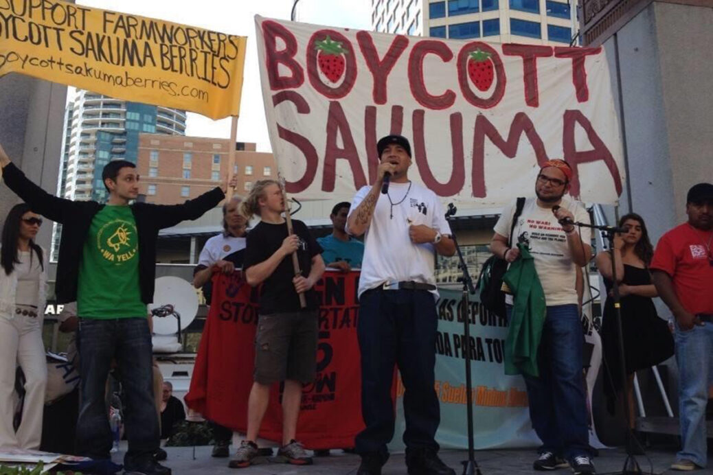 Después de cuatro años de boicot contra la granja Sakuma Farm, filial de la empresa Driscoll, los jornaleros mexicanos consiguieron un contrato colectivo y el reconocimiento del sindicato Familias Unidas por la justicia, en el norte del estado de Washington. Iglesias de todas las religiones y universidades acompañaron la lucha de los trabajadores
