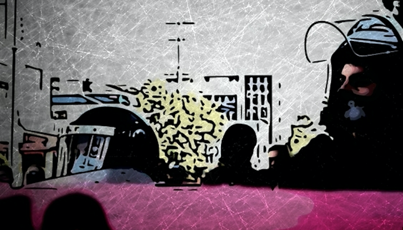 La convocatoria indicaba que la concentración iniciaría a las 6:00 p.m., así que Joel llegó temprano, cerca de las 5:20 p.m. recuerda, ya que uno de sus conocidos le dio raite al lugar. Para esa hora las inmediaciones de la Fiscalía de Jalisco ya estaban cercadas; la calle 14, la 12 y la 16, la 3 y la 5 estaban rodeadas de policías formando un cuadrante alrededor de las instalaciones, algunos elementos estaban uniformados con equipo antimotines y a bordo de patrullas oficiales, otros más estaban vestidos de civil, con chalecos antibalas, pasamontañas y rodeados de camionetas sin ninguna insignia o número de serie que pudiera identificarles, incluso, había vehículos que no llevaban placas.