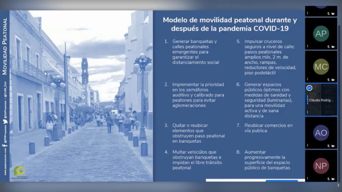 “Este momento el que todavía no podemos salir de casa, nos permite acercarnos a otros y reflexionar sobre cómo movilizar a la población sin contagiarse. Por eso hay que tomar en cuenta la movilidad activa, y uno de sus ejes es la movilidad peatonal”, dijo durante el foro Amparo Ortega, integrante de la Red Women in Motion con experiencia en participación ciudadana y movilidad urbana.