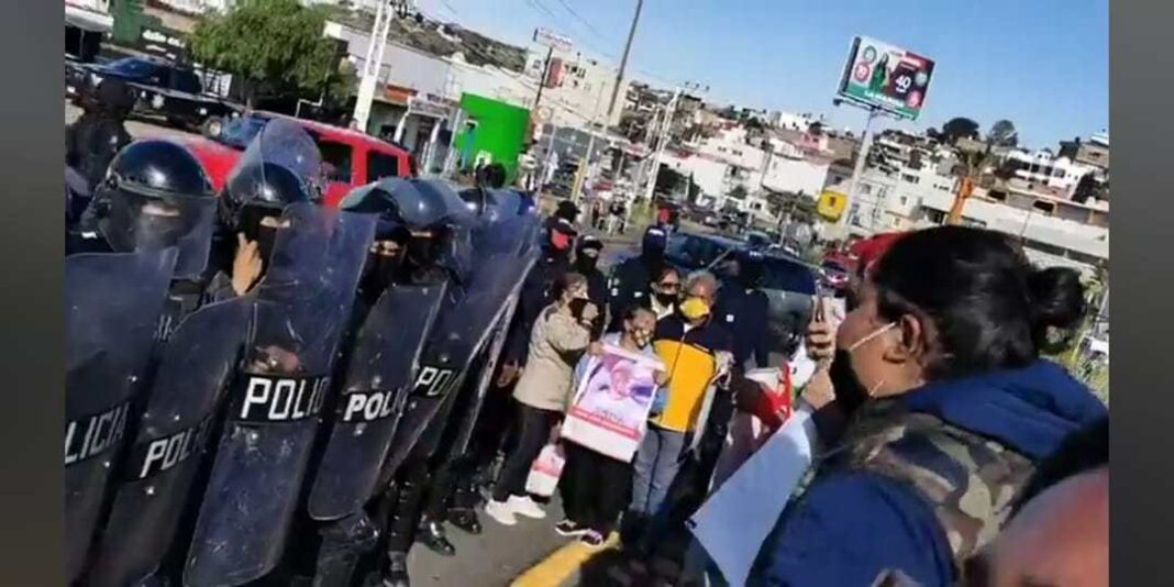 Cinco mujeres, familiares de personas desaparecidas, una activista y un funcionario de la CNDH fueron arrestados; cuatro personas más resultaron lastimadas en el brutal operativo en el que fueron rodeadas por decenas de uniformados que portaban escudos, jaloneadas y empujadas.