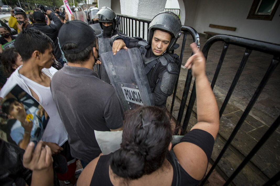 Familiares y amigos de Eduardo y Brayan, jóvenes desaparecidos el 18 de julio en Teocaltiche, se manifestaron frente a Casa Jalisco; ahí se les intentó intimidar con policía antimotines. Pedían ver al gobernador, Enrique Alfaro, pero sólo fueron recibido por un subalterno que intentó persuadirlos de que dejaran de manifestarse.