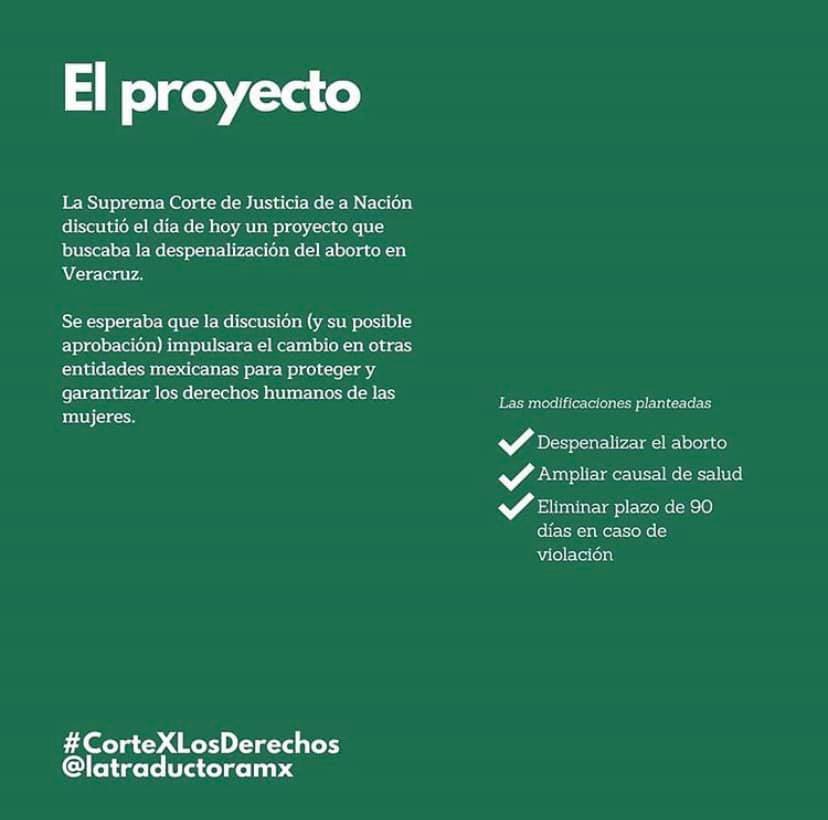María de la Luz Estrada, coordinadora del área de Violencia de Género y Derechos Humanos de Católicas por el Derecho a Decidir y del Observatorio Ciudadano Nacional del Feminicidio (OCNF) afirmó que la decisión tomada por las y los ministros “deja en un estado de indefensión” no sólo a las organizaciones que promovieron el amparo, sino a todas las niñas, adolescentes y mujeres del estado de Veracruz, puesto que “la corte no resolvió el amparo, no se discutió la situación del aborto en el estado de Veracruz, así como tampoco la omisión legislativa de fondo”: