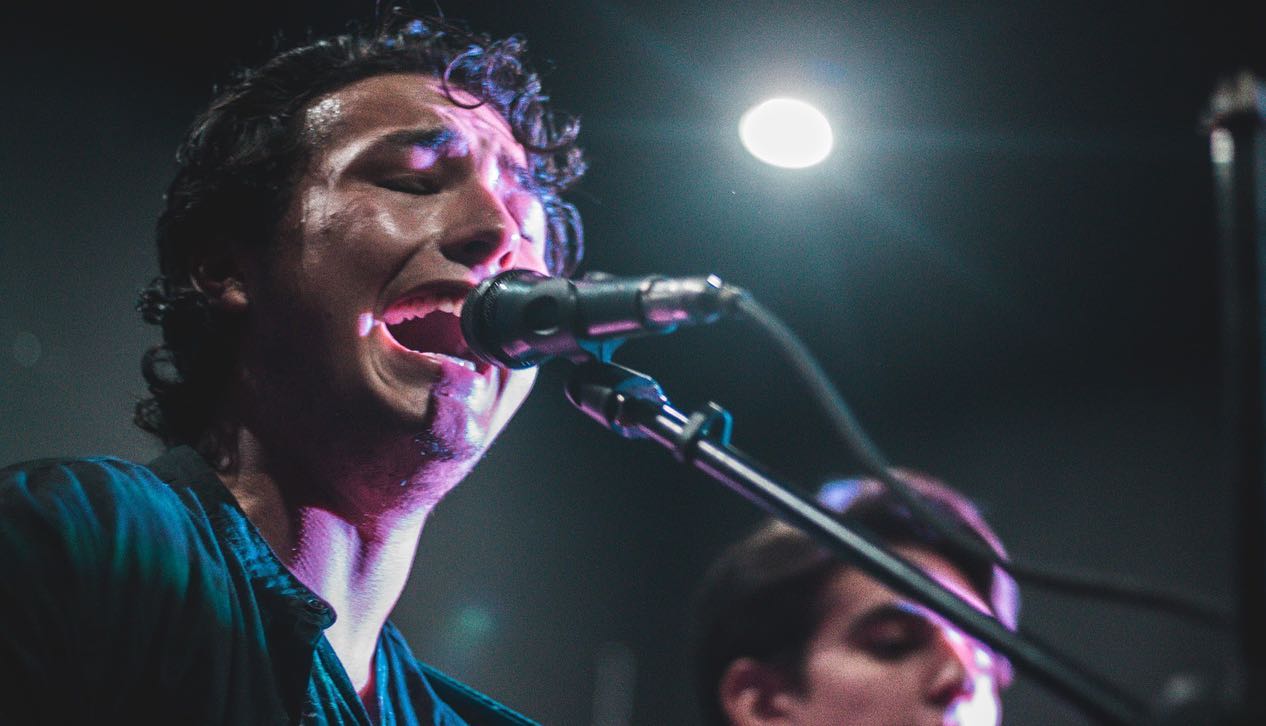 Al micrófono y en la guitarra, Christian Romo en el Festival Membrana Colectivo en Puebla