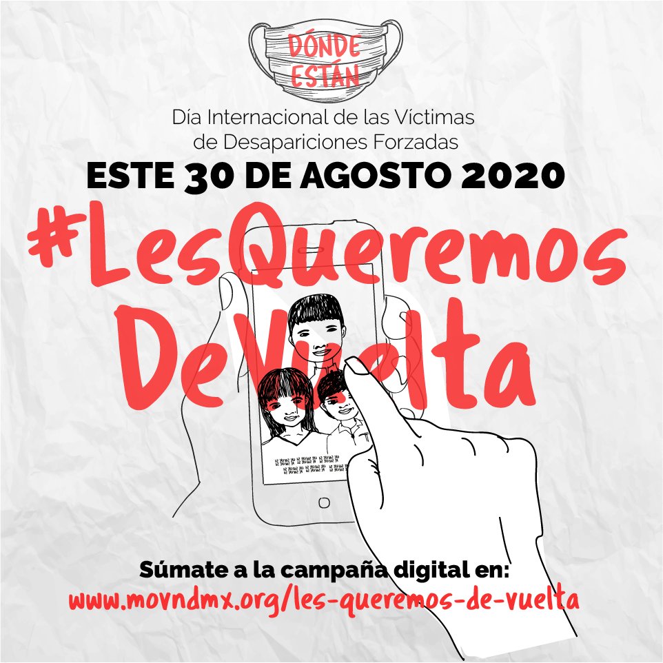 En el marco del Día Internacional de las Víctimas de Desapariciones Forzadas y frente al contexto de pandemia provocada por COVID-19, el Movimiento por Nuestros Desaparecidos en México (MNDM), que reúne a más de 60 colectivos y organizaciones de familiares de personas desaparecidas en el país y Centroamérica, lanzó este lunes 24 de agosto la campaña bajo el hashtag #LesQueremosDeVuelta, que busca “dignificar la memoria de las personas desaparecidas”, no sólo en torno a la exigencia de justicia, sino además, en el significado que cada una de ellas tiene para la sociedad a la que hacen falta.