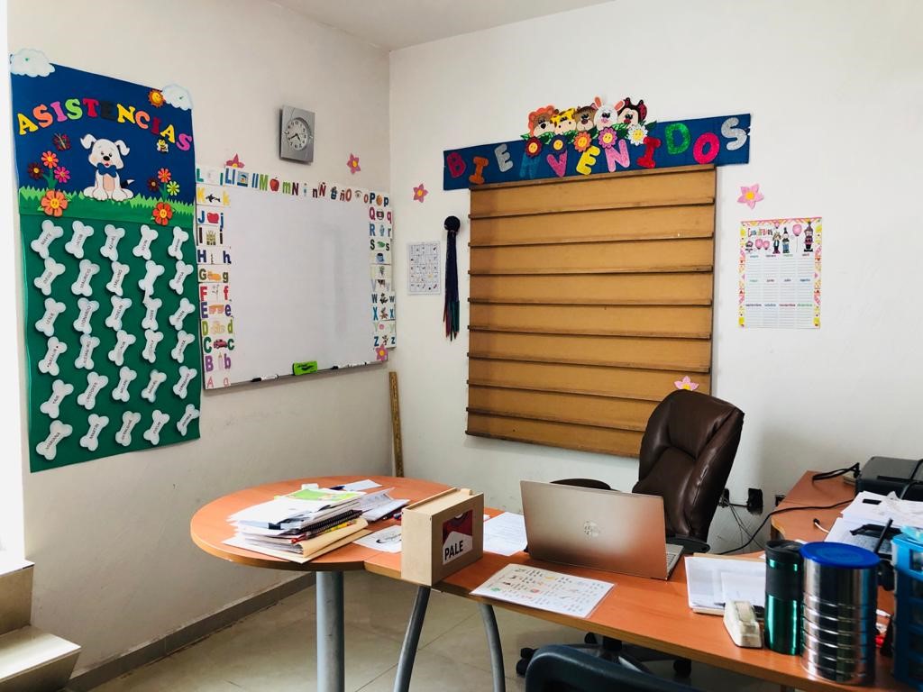 Para asegurarse de ofrecerles a sus estudiantes clases tan dinámicas y coloridas como las presenciales, convirtió un espacio de su casa en un nuevo salón de clases y hasta pizarrón consiguió, de esta manera los videos que haga para sus alumnos tendrán un fondo como al que ellos estaban acostumbrados: